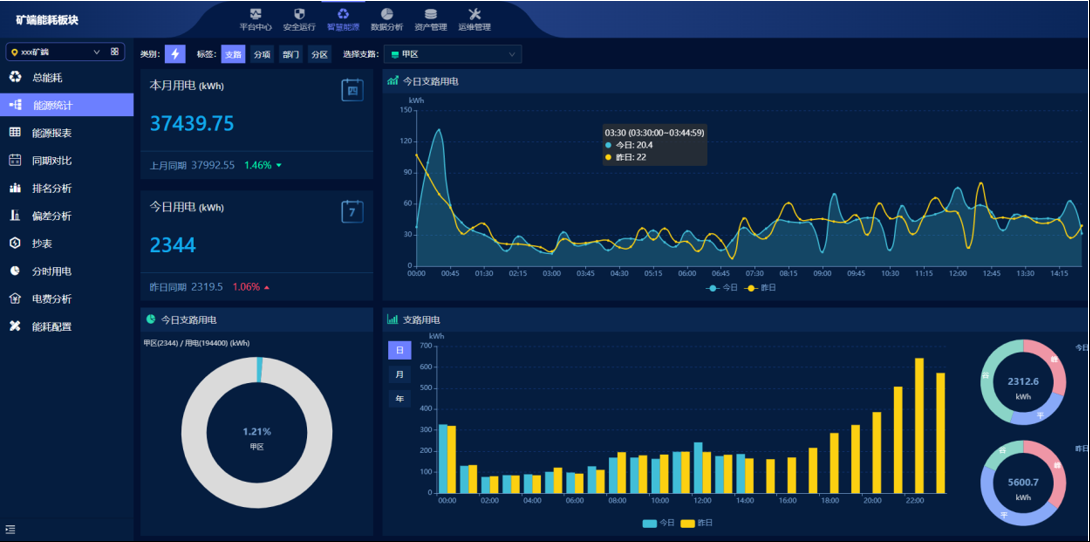 ● 重點(diǎn)耗能設(shè)備(設(shè)備集群、工藝段)監(jiān)測(cè)與能耗統(tǒng)計(jì)分析: